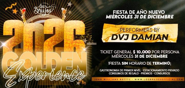 Este miércoles 31 de diciembre, Brujos Discotheque presenta GOLDEN EXPERIENCE 2026, una fiesta creada para quienes buscan cerrar el año con estilo, energía y una producción de primer nivel. Un evento pensado para ofrecer diversión ilimitada, comodidad y una experiencia totalmente distinta a cualquier otra fiesta de fin de año en la ciudad.